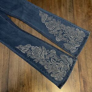 Studded Denim Flared Jeans