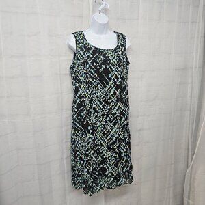 Studio 1 Black Blue Sleeveless Chiffon Dress Abstract Peplum Boho 12P