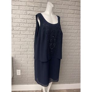 Studio 1 Navy Embroidered Beaded Front Layered Sleeveless Dress Size 22