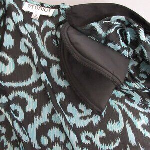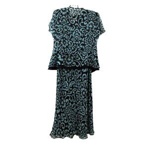 Studio 1 Shrug Jacket & Dress 2-Piece Size 10 Black & Blue Print Lined Formal