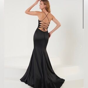 Step into elegance with this stunning teal evening gown. Perfect for any formal occasion, this dress offers a flattering fit and a graceful silhouette. Halter v-neckline, fitted flare slim satin skirt with lace-up back and sweep train. Silky Satin. Bra padding added. Also added a little mesh insert that can be cut out. Gorgeous turquoise color. See all photos.