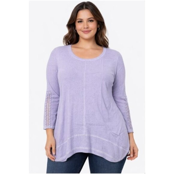 Studio 1886 Ribbed Knit 3/4 Sleeves Lavender Touch Of Lace Tunic Top Size XL
