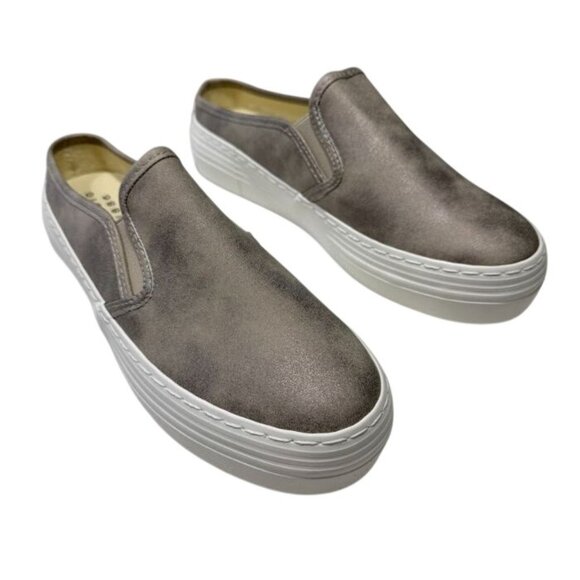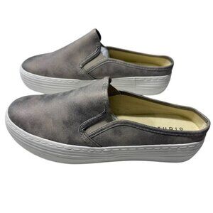 Studio 1886 Womens Metallic Taupe Slip-On Sneakers Size 8 Comfortable and stylish metallic taupe sneakers offering a slip-on design with durable outsoles. A versatile pair suitable for casual and semi-casual wear. • Slip-on design for easy wear • Durable synthetic outer material • Textured white soles for grip • Metallic finish for a modern look • Lightweight and comfortable construction Please ask for photos of exact product if needed Studio 1886 Features: • Sneakers • All season • Metallic • China • Wipe with a dry cloth Size: Womens 8 Condition: New Minor scuffs on the sole.