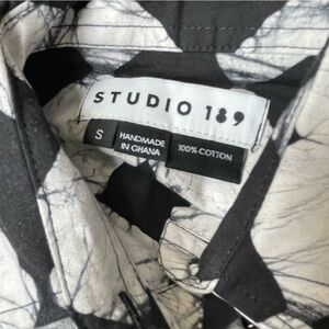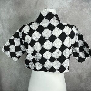 Studio 189 Cotton Cropped Camp Checkered Button Up Shirt In Black White Size S