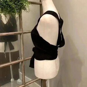 Sweater top with back cross straps, waist tie