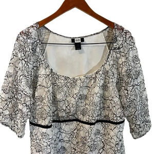 Studio 1940 Blouse 18/20 Black and White Lace Floral Ribbon Waist Trim Stretch