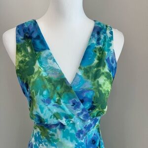 This elegant sundress by Studio features a sleeveless design with a flattering V-neckline, perfect for a wedding guest or cocktail occasion. The vibrant blue hues and wrap-style silhouette create a chic and sophisticated look, while the flowing A-line skirt adds a touch of grace to your ensemble.