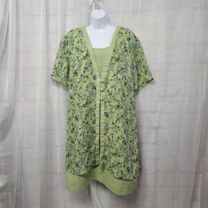 Studio 1940 Green Blue Floral Layered Dress Boho Cottagecore Shift 28W