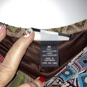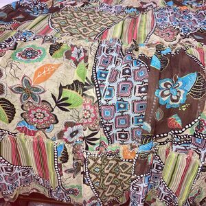 The Studio 1940 Skirt is a stylish boho piece perfect for any season. This teal brown maxi skirt features a floral pattern, layered accents, and an elastic waist for comfort. Made from polyester, this long-tiered skirt is a versatile addition to any woman's wardrobe. The pull-on closure and size medium make it easy to wear and perfect for a range of occasions.