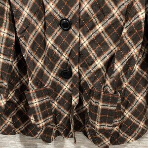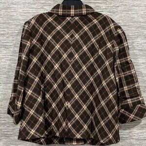 Studio 1940 Womens Plus Size 26W Plaid Wool Blend Jacket W/ 3/4 Sleeves In Brown