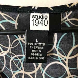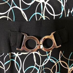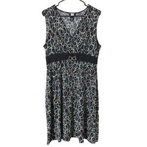 Studio 1940 Sleeveless Wrap Front Midi Dress. Size Large. Black, blue and tan. Front buckle detail. Slip on. Stretchy. Nice comfortable summer dress. Good used condition. Very little pilling but not noticeable.