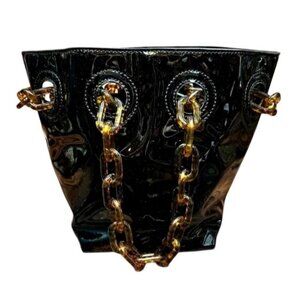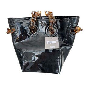 Studio 33 Women’s Woke Newbie Bucket Bag Patent Glossy Black Satchel Handbag NWT
