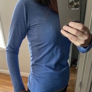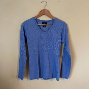 Studio 33 light blue long sleeve fitted cotton poly V-neck knit top, med, large