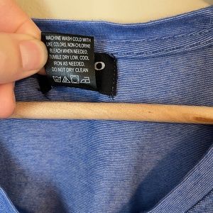 This cute, comfortable knit top has minimal signs of wear and is freshly laundered. Made in Bangladesh, the tag says "Large" but it could also fit a medium. Model wears a medium. 60% cotton/40% polyester. This top is slightly fitted at waist.
