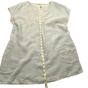 Studio 41 Light Blue Linen Tunic Top With Pockets & Pleated Front Detail Size M