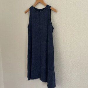 Studio 412 100% Linen Denim Blue Sleeveless Lagenlook A-Line Knee Length Dress