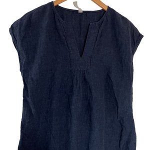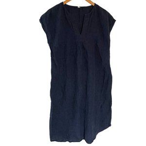 Studio 412 August Tunic Shift Dress Small S Navy Blue V Neck Short Sleeve Linen