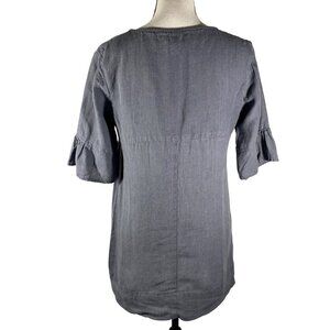 Studio 412 linen made in Maine Gray Linen V-Neck Tunic Top With Ruffle Sleeves S