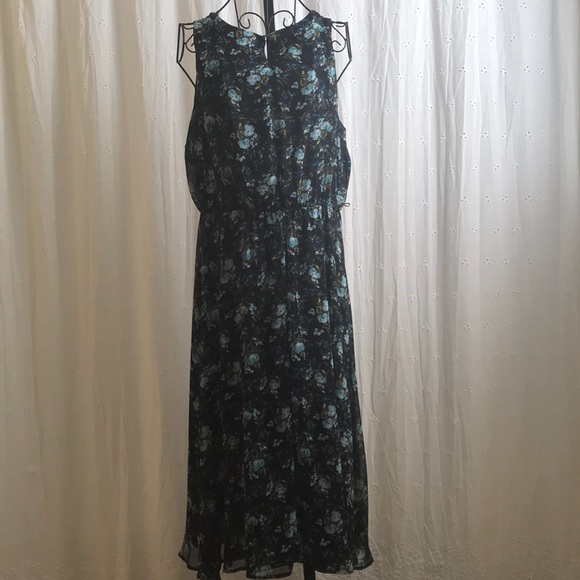 Studio Floral Dress Color: Navy / multi Elastic waste Pull over