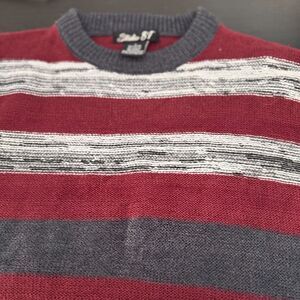 Studio 81 Striped Crewneck Sweater Men’s S GrandpaCore Retro Maroon Gray Knit