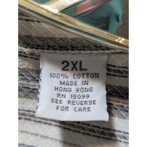 Studio Alx Mens 2XL Button Down Beige Brown Striped Shirt Long Sleeve