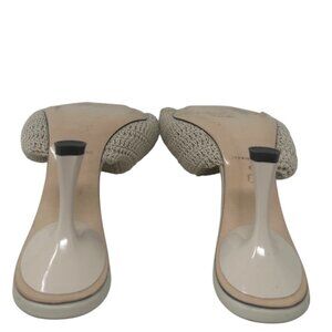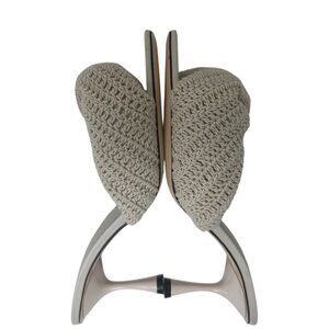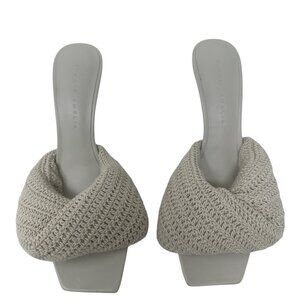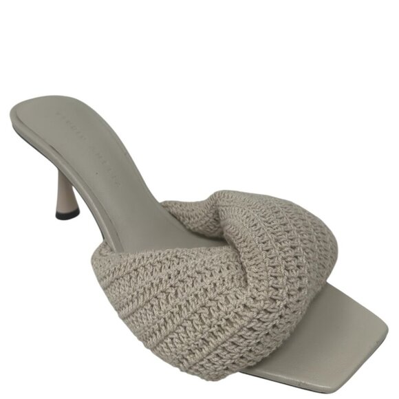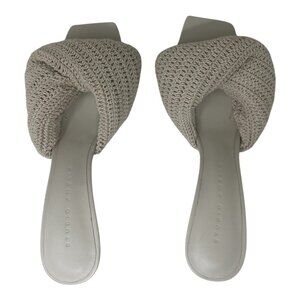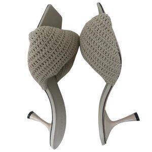 Studio Amelia Crochet Twisted Front Knit Mules Slides Heels Sandals Open Toe Slip On Leather Size 37 US 7, In Stone Color, Neutral, Resortwear, Minimalist, Minimalism, Statement