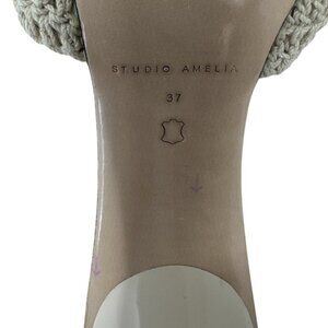 Studio Amelia Crochet Twisted Front Mules Heels Open Toe Slip On Leather Size 7