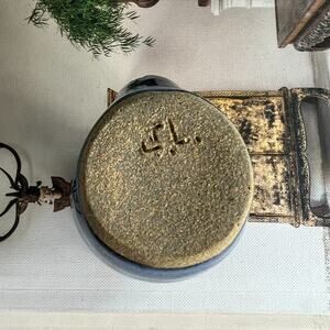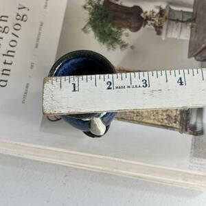 This Studio Art Egg Seperator is a small stoneware mug with a unique blue glazed finish and a funny face design of an open mouth. Handmade with a round shape, it is perfect for cooking, kitchen use, or baking. This decorative piece doubles as a functional utensil, making it a fun and quirky addition to any collection or a perfect gift for those who appreciate American handmade art pottery.