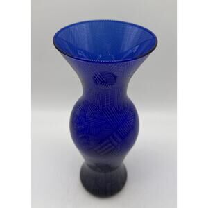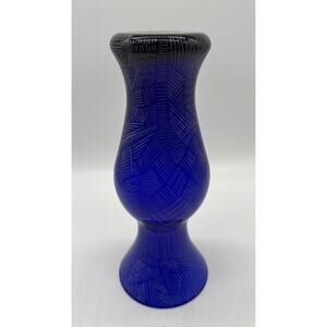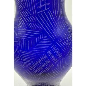 Studio Art Glass Cobalt Blue Glass Vase Etched Design 9” Signed Valerie Layer