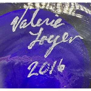 Studio Art Glass Cobalt Blue Glass Vase Etched Design 9” Signed Valerie Layer. Condition is Used. Shipped with USPS Ground Advantage.