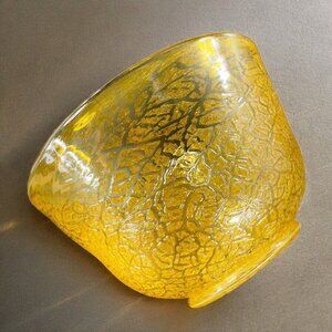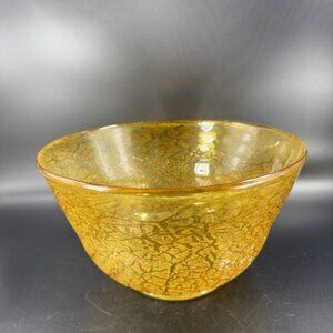 Studio Art Glass Large Bowl Dish Yellow Lava Texture HandBlown Glass Centerpiece
