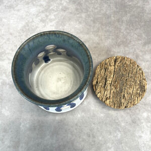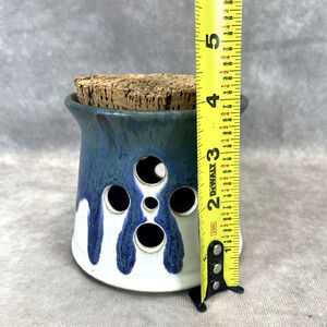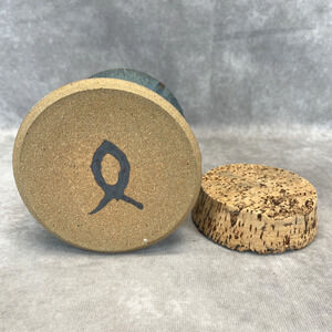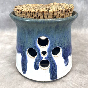 Studio Art Hand Thrown Pottery Garlic Keeper Drip Glaze Jesus Ichthys Fish Stamp