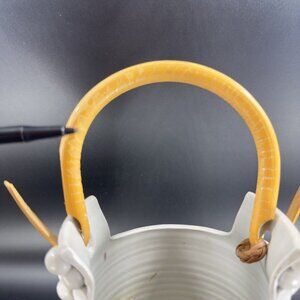 Studio Art Pottery Basket Vase With Wood Handle Artist Signed Ceramic Vintage