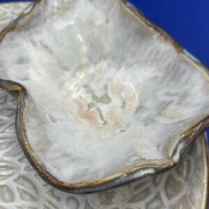 Handmade Studio Pottery Chip & Dip Plate Dish Set by Harris | Textured Glaze, 12”