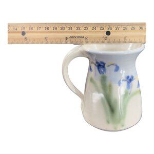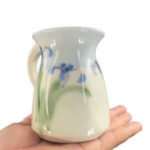 Studio Art Pottery Coffee Mug Cup Set 2 Hand Made Mugs Blue Green Flower Signed