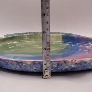 Studio Art Pottery Fish Shaped Dish Rainbow Glaze