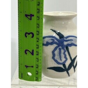 Studio Art Pottery Floral Design Bud Vase Blue Boho 4” Tall Signed JG