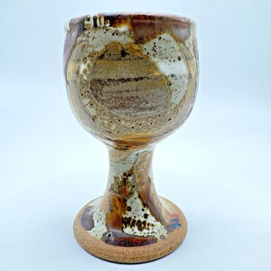 Studio Art Pottery Goblet Chalice Cup Textured Glazed Brown Gray Stoneware #4
