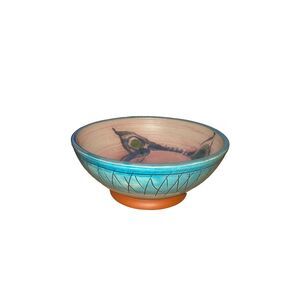 Studio Art Pottery Hand Thrown Unique Glazed Bowl with Dog Artist Signed 8"