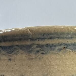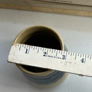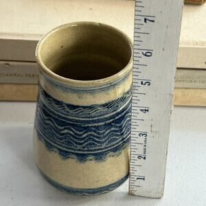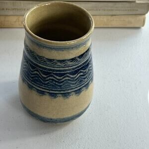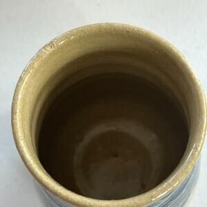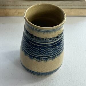 Studio Art Pottery Handmade Jar Vase Signed Ivory Blue Striped Zig Zag 5.5”