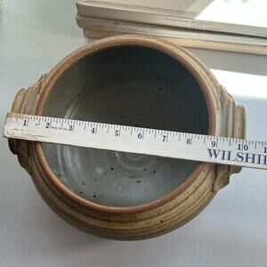 This stylish Studio Art Pottery Handmade Striped Speckled Mid Century Bowl is a unique and decorative piece for any kitchen. Made from clay and stoneware with a glossy finish, this vintage bowl features a round shape and colorful speckled pattern. Signed by the artist, this Asian-influenced bowl adds a touch of Arts & Crafts/Mission Style to your decor. With a height of 5.5" and a width of 10", this original piece is perfect for displaying or serving something in style. Just remember to hand wash only to keep it looking its best.