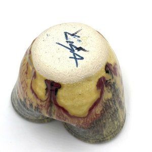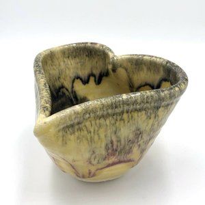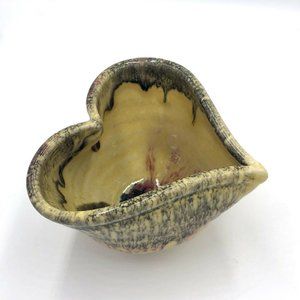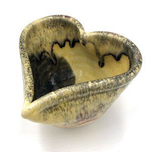 Studio Art Pottery Heart Shape Bowl Dish Signed Lisa Drip Glaze Yellow Black