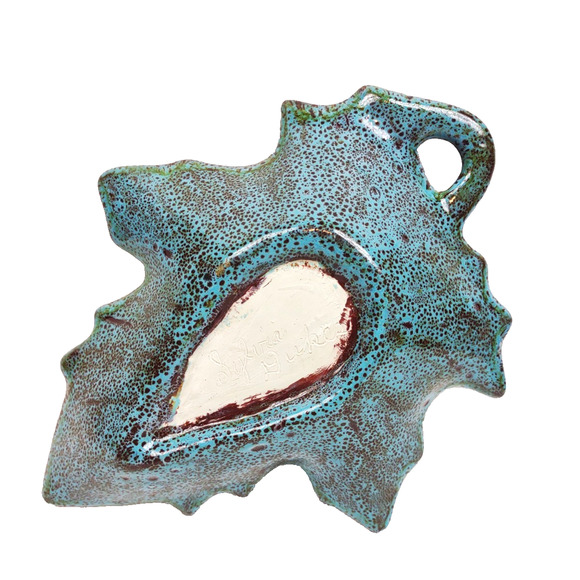 Vintage Hand Made Ceramic Glazed Art Pottery Leaf Trinket Dish 10" is in used, but in great condition.