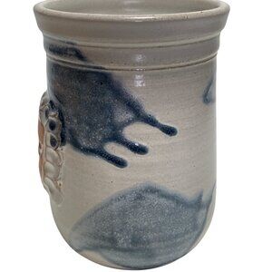 This Studio Art Pottery Mug is a unique and handmade piece featuring a contemporary folk art design inspired by cross-stitch. The red clay mug is signed by the artist and has a glossy finish, adding a touch of elegance to your daily coffee or tea routine. With a capacity of 12oz and a vintage 1991 production, this mug is a charming and functional addition to any home, perfect for all occasions and suitable for both men and women. The red clay material and intricate details make it a standout piece for any pottery or glass collection.