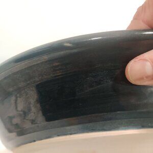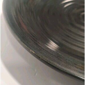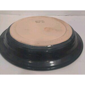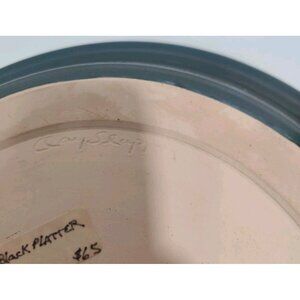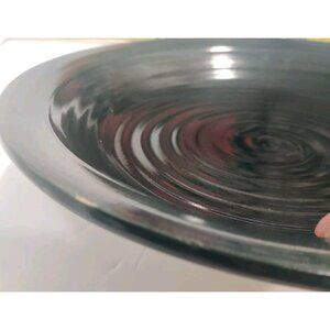 Studio Art Pottery Platter / Bowl Swirls Solid Dark Green/Black? 13x13x2" Signed