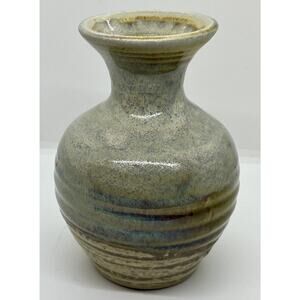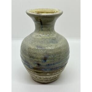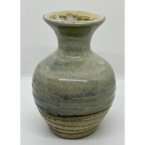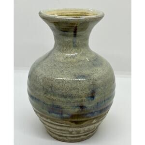 Studio Art Pottery Signed Glazed Vase Blue And Earthtones 6” X 4”