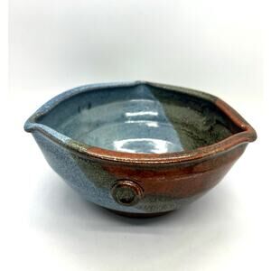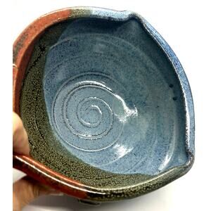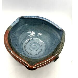 Studio Art Pottery Signed Randi Lile 3 Toned Drip Glaze Blue Brown Rust Dish