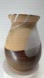 Hand-thrown studio art pottery vase with artist initials IM. This stoneware vase features multicolor natural earth tones in hues of brown, tan, and grey with a drip detail. A lovely piece to add to any collection!