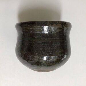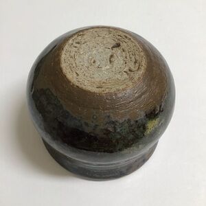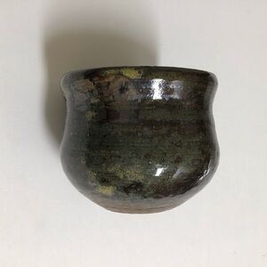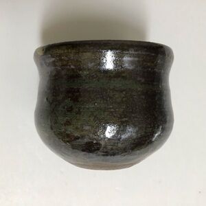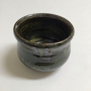 Studio Art Pottery Tea Bowl Sake Cup Handmade Green Glaze Brown Signed Vintage