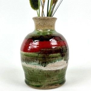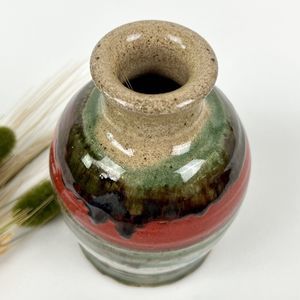 Studio Art Pottery Vase 5.5" Tall Fat Lava-Style Glaze Red/Green/Brown Signed